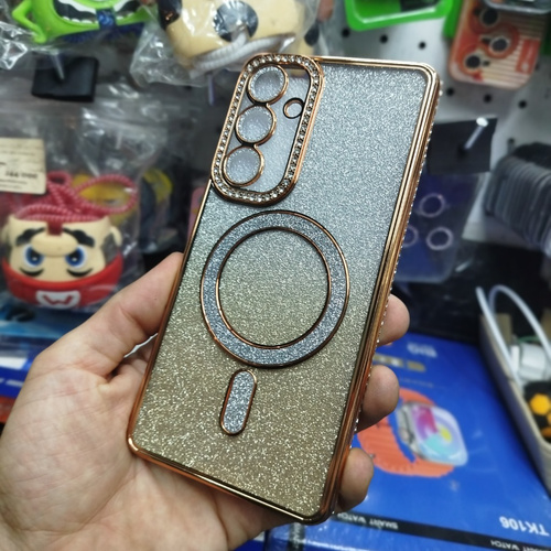 کاور قاب سامسونگ S24 FE مدل اکلیلی مگ سیف دار با محافظ لنز نگین طرح 2